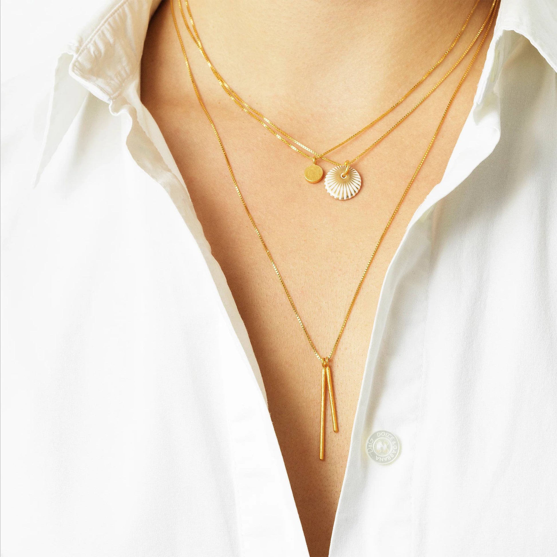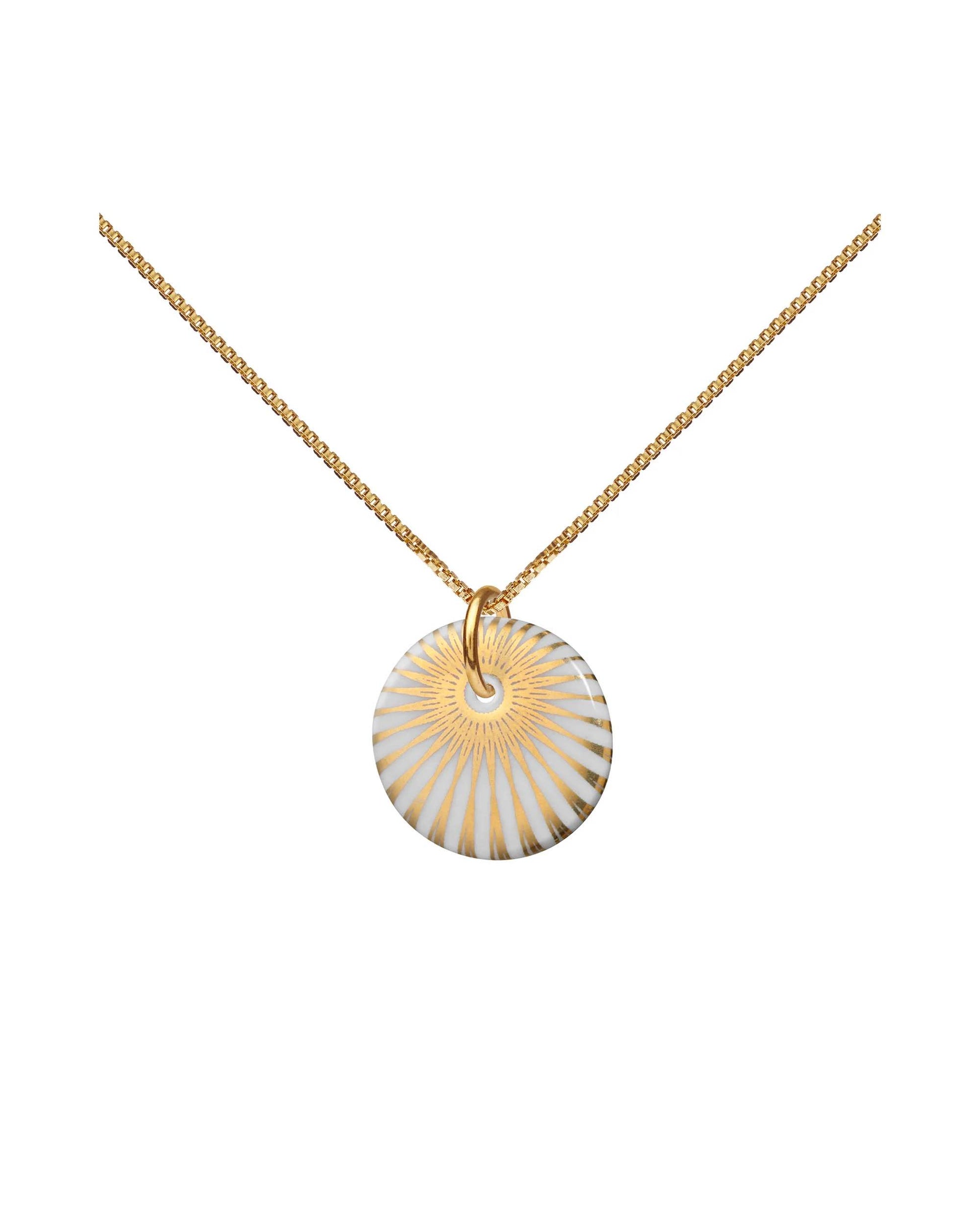 Venezianische Halskette „Splash“ mit Anhänger aus weißem Porzellan und dem ikonischen „Splash“-Dekor von Scherning in glänzendem Gold. Das perfekte Geschenk für Ihre Liebsten.