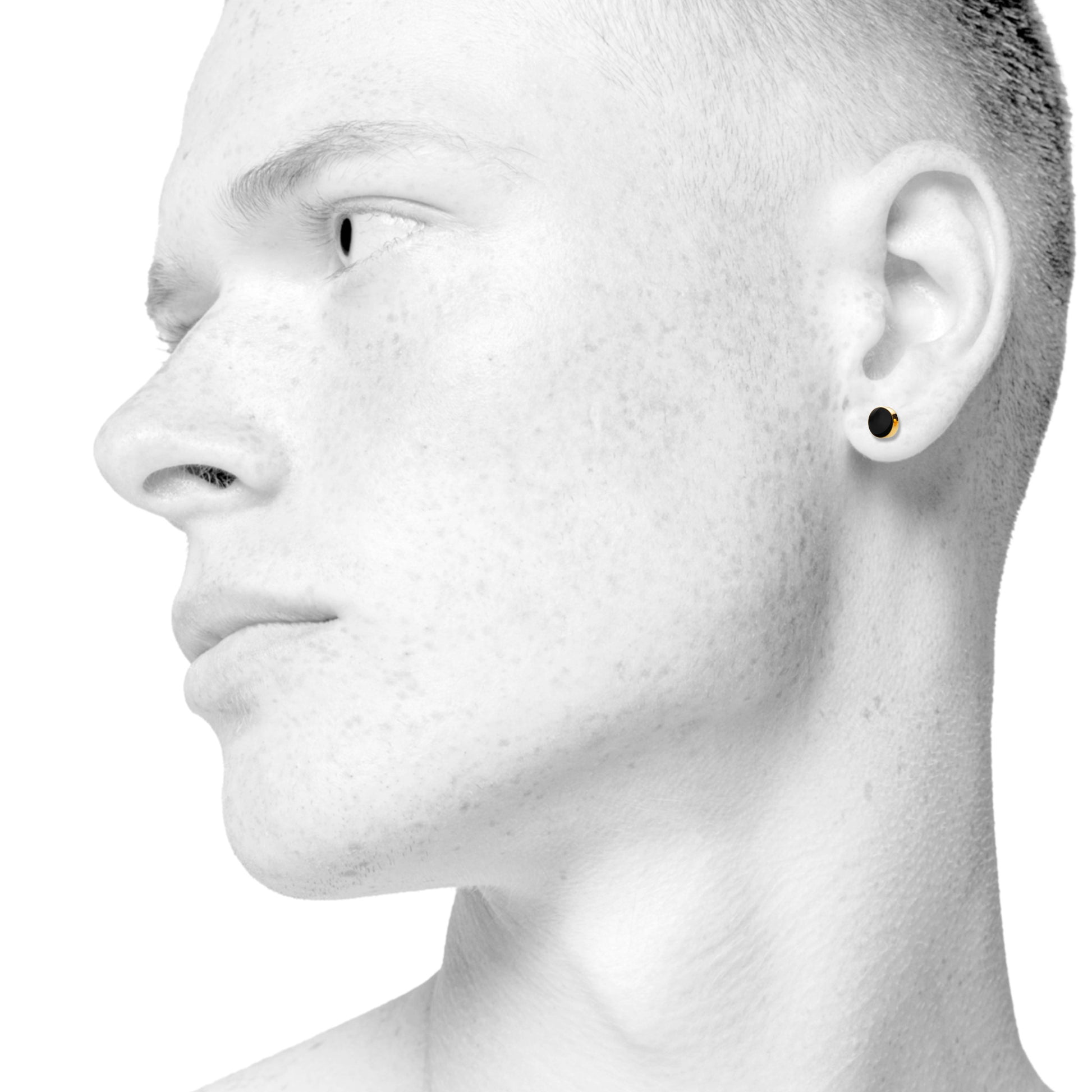 Sign earrings for him and her. Black and gold. Gold-plated sterling silver. Scherning Copenhagen
