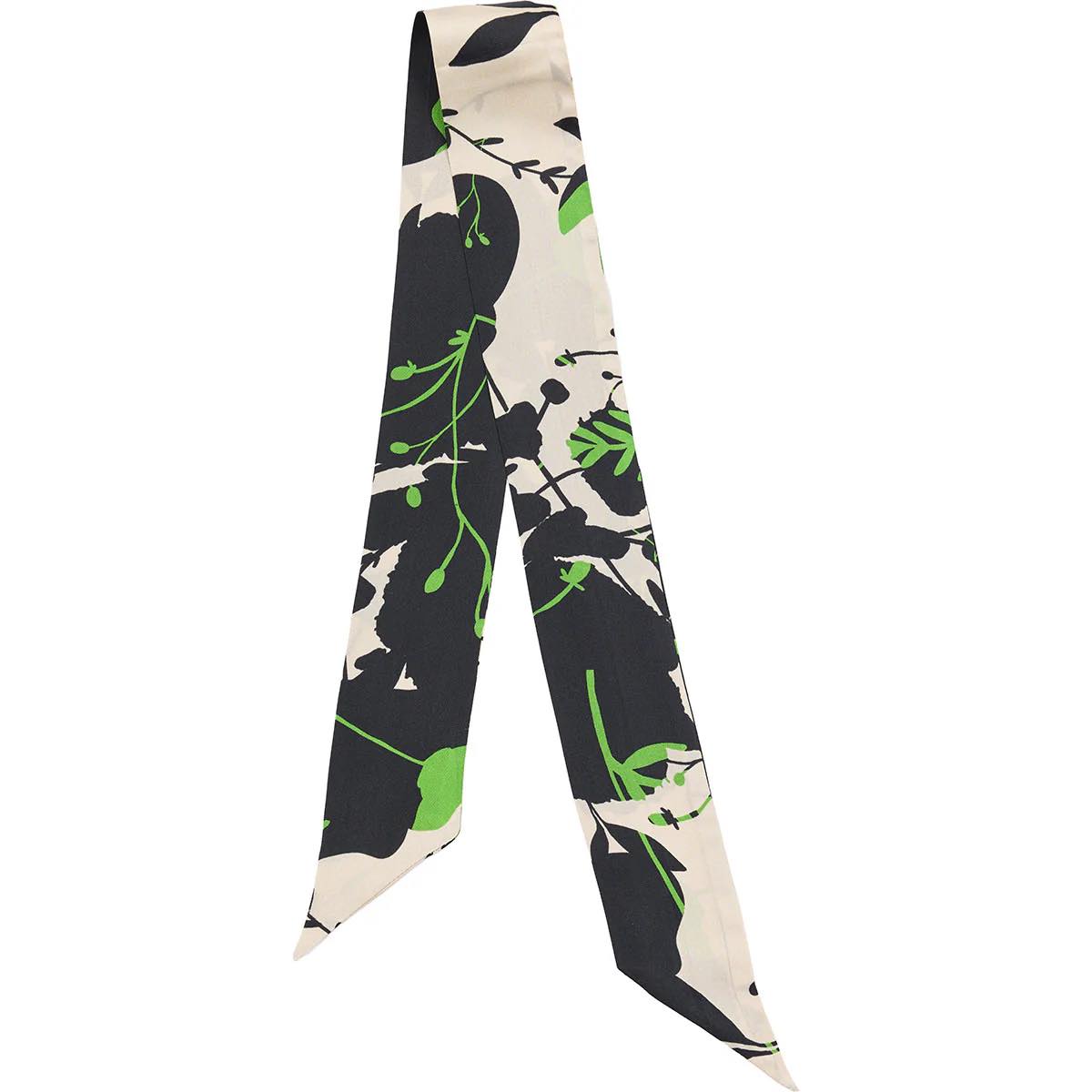 Monokrome Twilly smalt tørklæde. 100% silke. Creme, sort, grøn. Bella Ballou